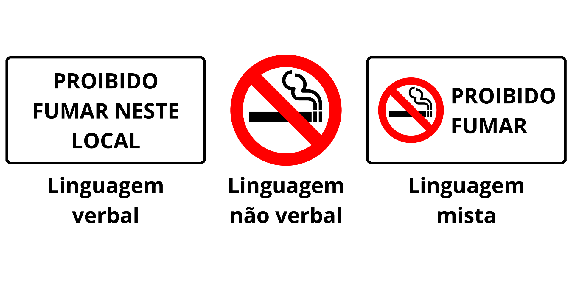 Exemplos de linguagem verbal, não verbal e mista, respectivamente. Fonte: Acervo pessoal - Professor Dimas Rodrigues Dutra